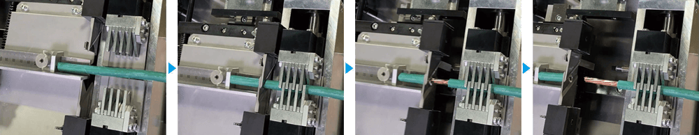 その結果、芯線に傷がつきにくく、剥き口が直角になります。